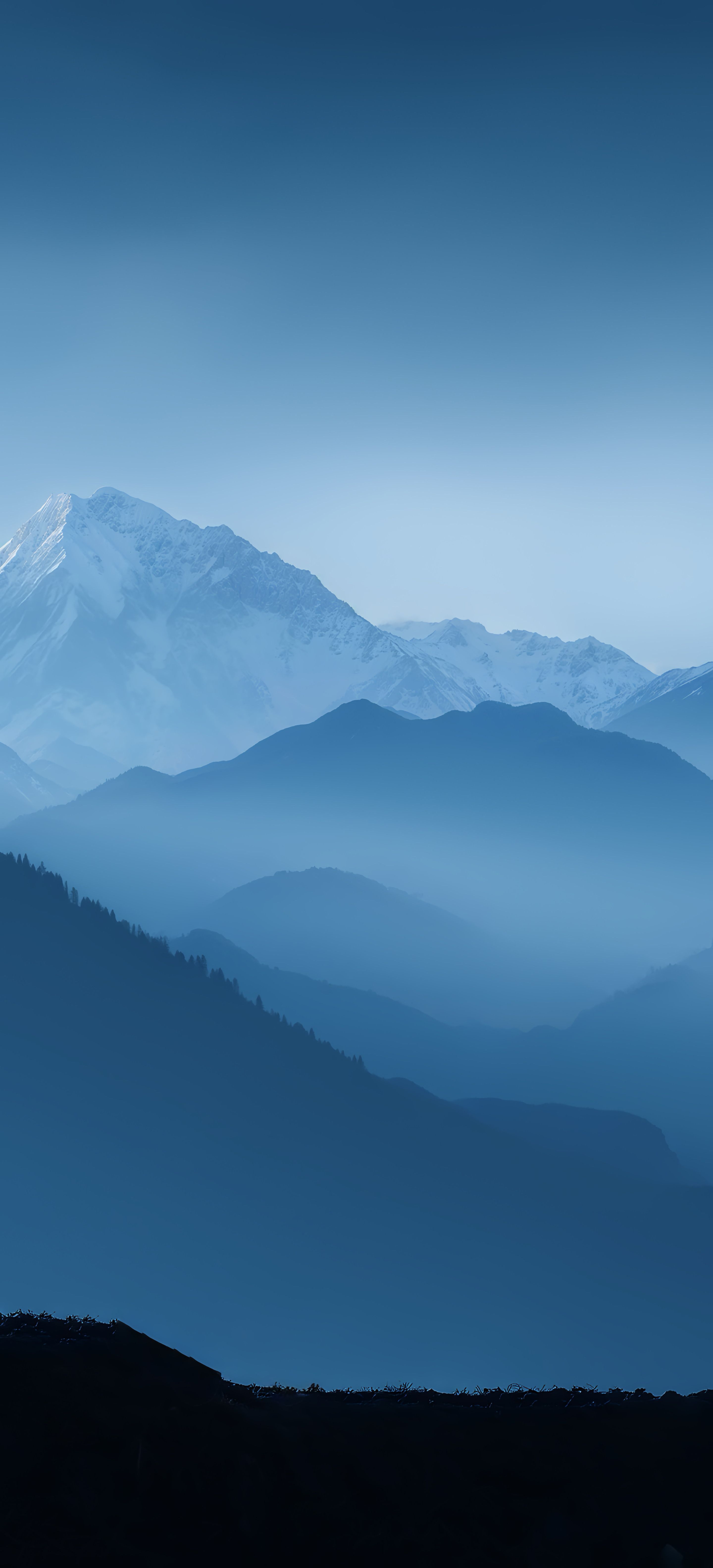 This beautiful nature wallpaper captures a serene mountain landscape layered with misty ridges and a majestic snow-capped peak. With its cool blue tones and peaceful ambiance, it brings a sense of calm and introspection to your screen. Perfect for nature lovers, creatives, or anyone seeking visual serenity, it adds a touch of minimalist elegance to your digital setup.